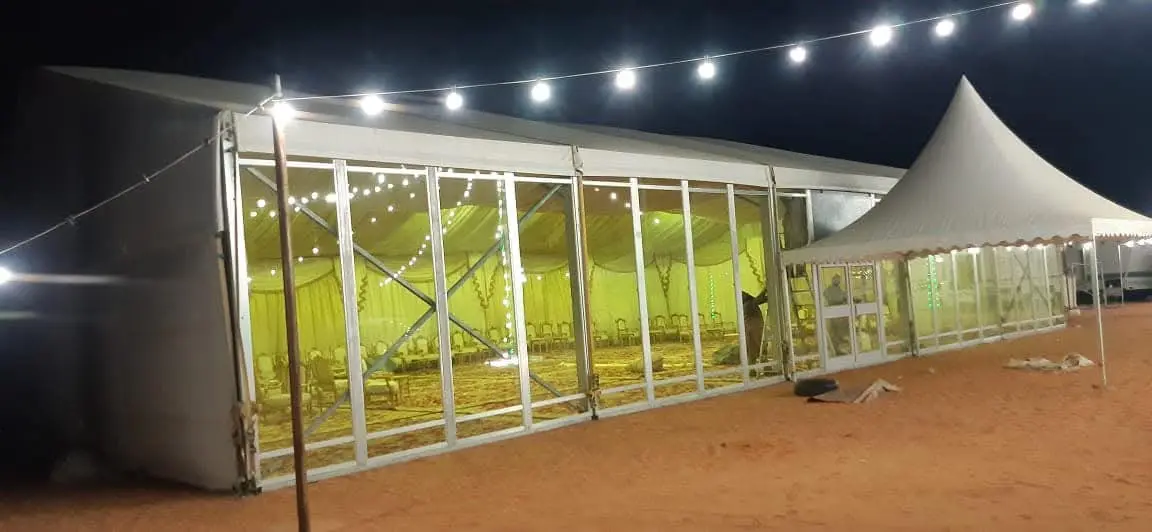 نوفر خيام عالية الجودة تناسب جميع المناسبات الخارجية، بتصميمات متعددة وأحجام مختلفة تلائم احتياجاتك. نضمن لك خيمة مجهّزة، آمنة، ومريحة مع خدمة تركيب احترافية وسريعة.